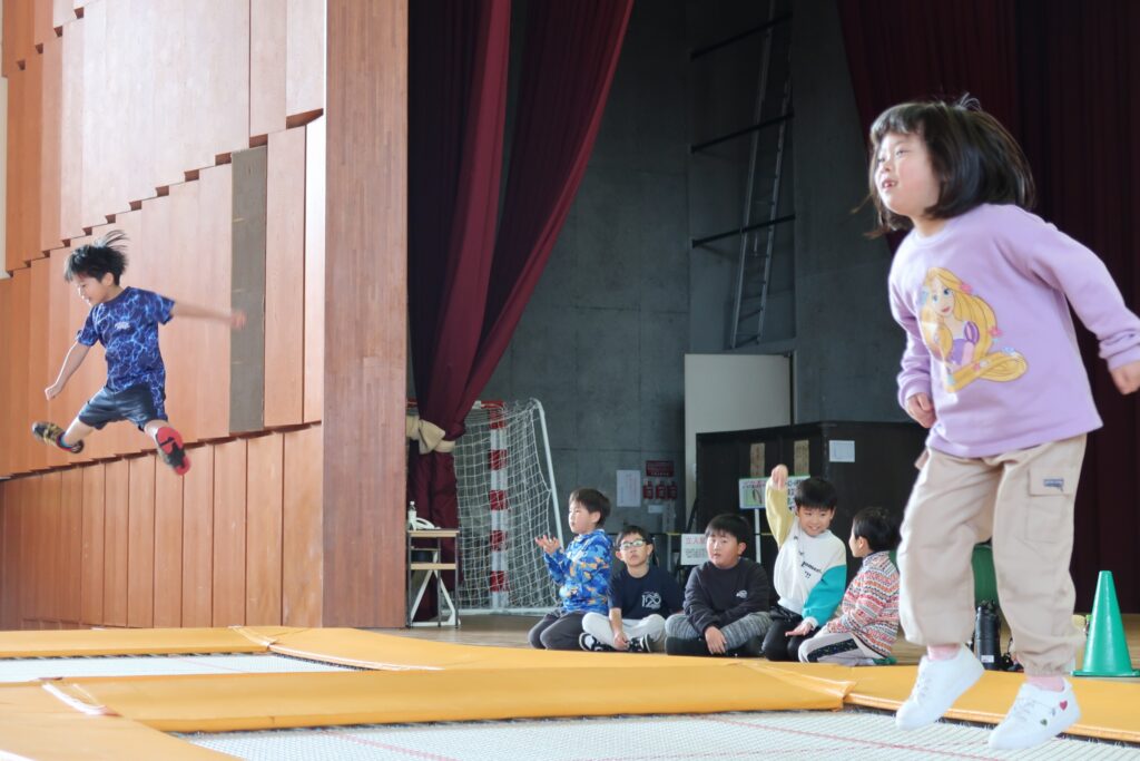 競技用トランポリンを保有している体育文化館で、楽しみながら体幹・バランス感覚を鍛えることを目的としています!